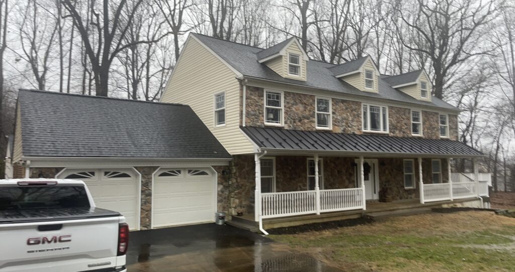 This project brought together the elegance of GAF Charcoal shingles with the modern touch of a matte black standing seam metal roof.