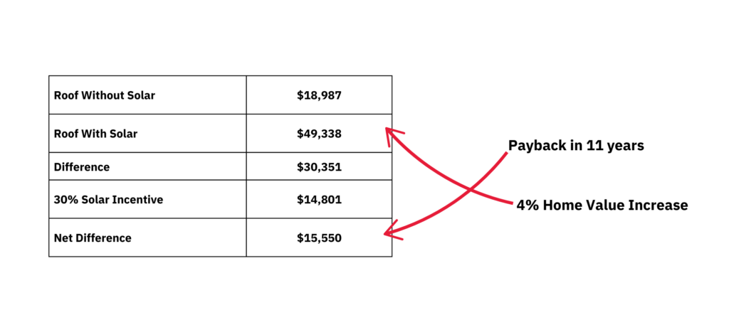 This reduced the additional cost of the solar roof to just $15,550 more than a traditional roof replacement.