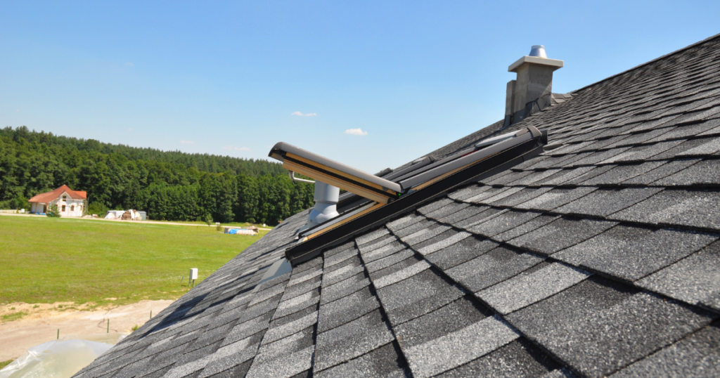 skylight on red shingle roof